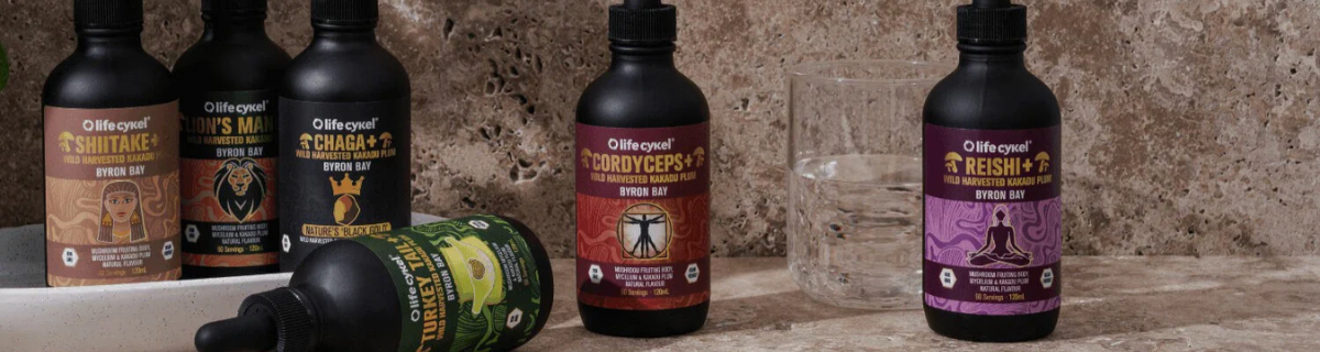 Life Cykel has evolved into Australia’s preeminent mushroom biotechnology company, equipped to harness the great potential mushrooms possess for health and wellness. By setting a high standard for commercial responsibility with the highest possible ethos for sustainability and equitable enterprise, Life Cykel’s mission is to produce one-of-a-kind products to those who wish to upgrade their wellness and reach their true potential. Life Cykel developed a unique double extraction process in their Australian and USA based laboratories to create their signature full spectrum double liquid extracts, infused with native Australian bush tucker flavours. All Life Cykel extracts are professionally developed and rigorously tested by their in-house scientists.